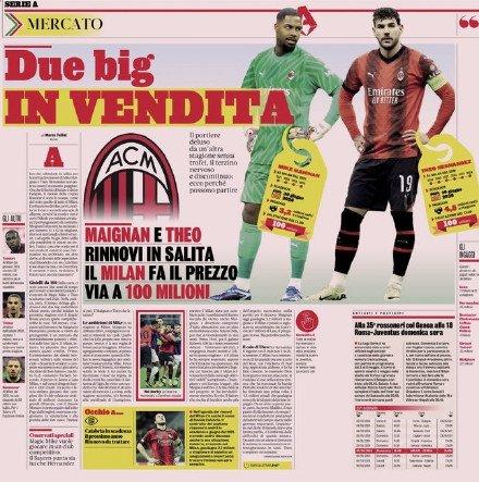 AC Milan opts to sell Maignan and Te'o for €100m bid.【fangjie】