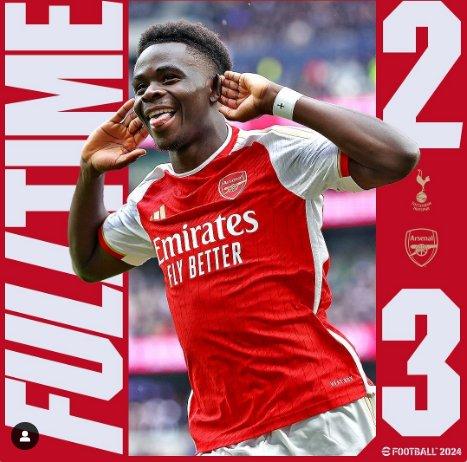 At 21:00 Beijing time on April 28, the 35th round of the Premier League, the much-watched North London Derby, Arsenal beat Spurs 3-2.