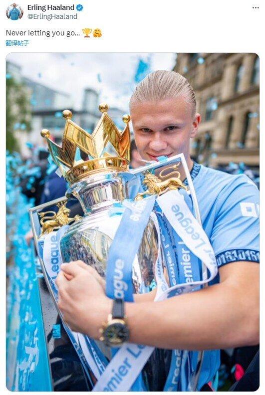 Haaland shows off the Premier League Championship trophy: Never let you slip away[JIAYU]