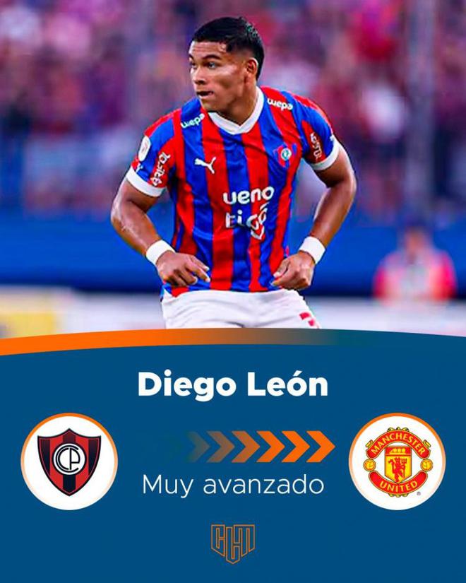 Cesar Luis Merlo has revealed that Manchester United are interested in Portnoteau left-back Diego Leon and are in advanced talks with the Paraguayan club over a move.