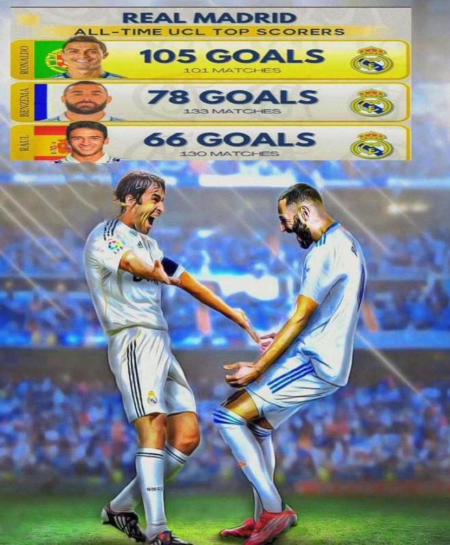 Although you are the prince of the Bernabeu and the captain of merit, there is a saying that perhaps Raul's competitiveness is not as good as Benzema. The French striker has more goals and more efficiency than Raul, with 324 goals in 606 matches compared to Benzema's 0.53. The Real Madrid captain scored 323 goals in 741 games with an efficiency of 0.43.